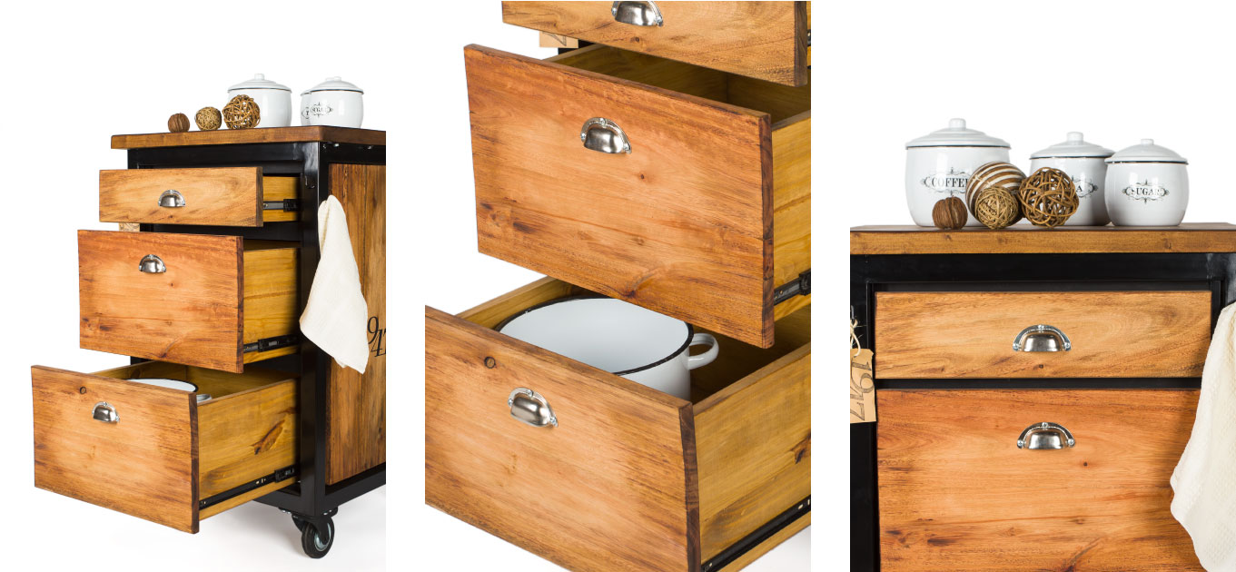 Si la Barra Finca te enamoró, pero necesitás un amor menos intenso, la Barra Cubo es para vos. Es la finca, pero más tranqui. Tres cajones para complementar tu guardado y bueno, todos tus planes culinarios. Aclaración: esta barra fue pensada como complemento y no como barra-barra, ¡eh!