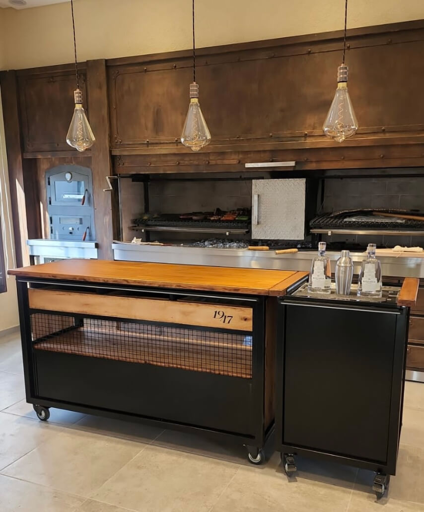 Con el tiempo, perfeccionamos nuestros diseños y ampliamos nuestra línea de productos: la Barra Pampa , inspirada en la tradición del asado y el disparador de todo lo que siguió; y la Barra Finca, más espaciosa y diseñada con cajones son solo algunas de nuestras innovaciones.